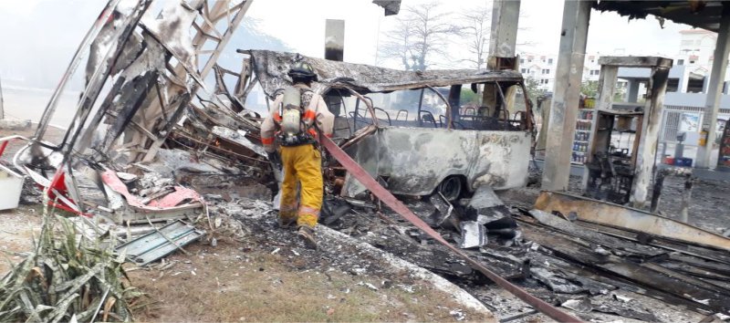 Los testigos dijeron que el conductor de la buseta al intentar esquivar la moto pierde el control del vehículo, que toma dirección hacía la estación de combustible, chocando violentamente contra una de sus torres; dicho impacto provocó una fuerte explosión que aturdió a las personas que estaban en los alrededores.