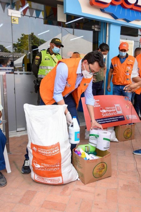 El gobernador Carlos Caicedo se desplazó este miércoles hasta el municipio de Ciénaga para acompañar el proceso de entrega de bonos que son redimidos por Mercados Populares Solidarios en los almacenes Justo & Bueno de este municipio, con el fin de que las familias cienagueras más vulnerables tengan acceso a alimentos y productos de aseo durante la cuarentena por el COVID-19.
