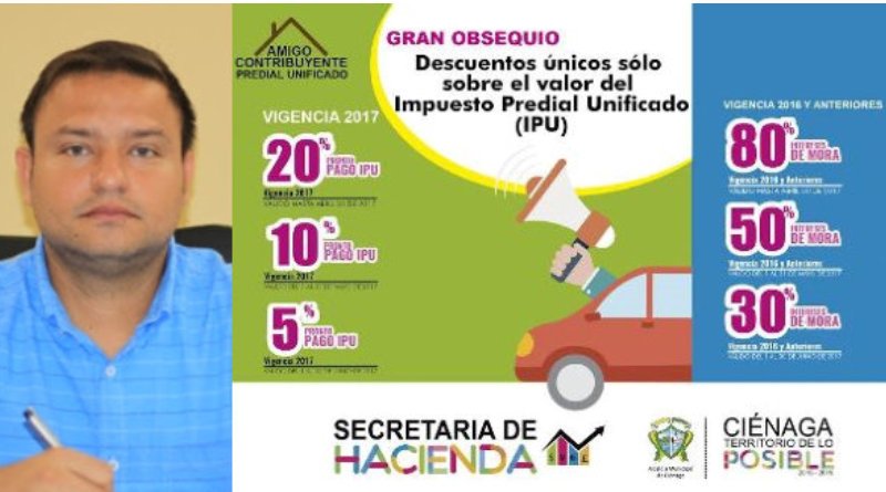 El secretario de hacienda Efraín Serrano Leal, señaló que los contribuyentes del impuesto predial unificado podrán acercarse a cancelar desde el 01 de abril con unos incentivos otorgados mediante acuerdo municipal, aprobado por el concejo de Ciénaga.