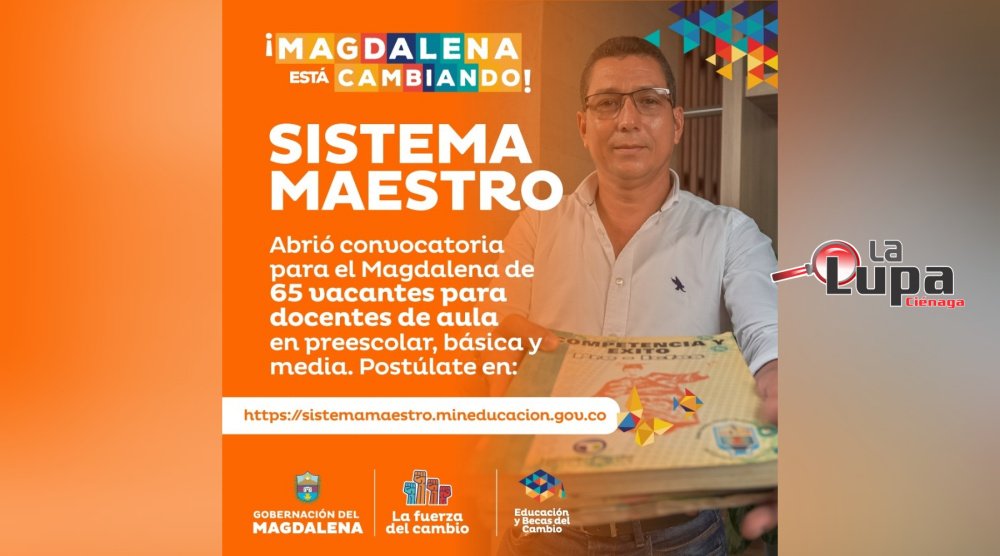A través del aplicativo del Sistema Maestro del Ministerio de Educación Nacional estará habilitada, este jueves 15 de septiembre, una convocatoria para suplir 65 cargos para docentes de aula preescolar, primaria, básica secundaria y media de las Instituciones Educativas Departamentales del Magdalena.