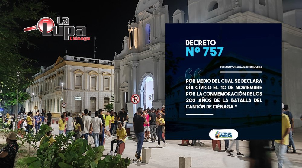 El alcalde Luis Alberto Tete Samper a través del decreto N°. 757, declaró día cívico el 10 de noviembre por la conmemoración de los 202 años de la Batalla del Cantón de Ciénaga, por lo cual, se suspende la jornada laboral en la Alcaldía de Ciénaga, instituciones educativas oficiales y entidades oficiales.