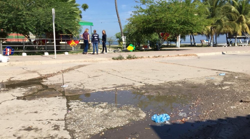 La alcaldesa (e) de Ciénaga, Lourdes Peña del Valle y la gerente (e) de Operadores de Servicios de la Sierra S.A. E.S.P., Claudia Cárdenas Rubio, adelantaron un recorrido por cuatro puntos de la ciudad, en donde se presentan quejas por el derrame de aguas servidas de los manjoles.