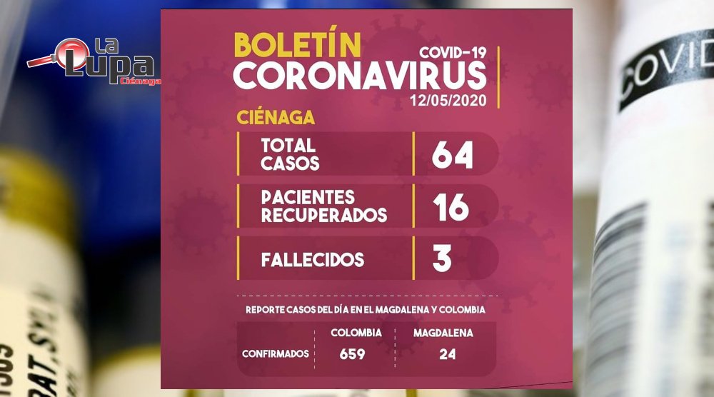 La administración municipal informó este martes 12 de mayo que aumentó a 64 el número de diagnosticados con Covid 19 en el municipio de Ciénaga.