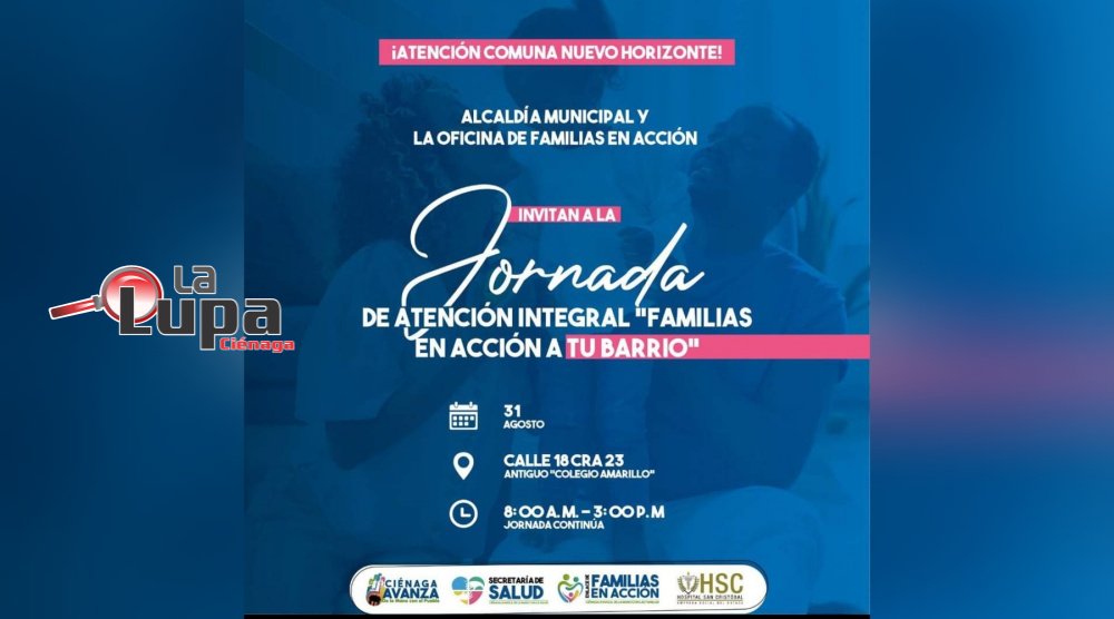 La alcaldía municipal ‘Ciénaga Avanza de la mano con el Pueblo’, a través de la Secretaría de Salud y la Oficina de Familias en Acción, los invita a la jornada de atención ‘Familias en Acción a Tu Barrio’.