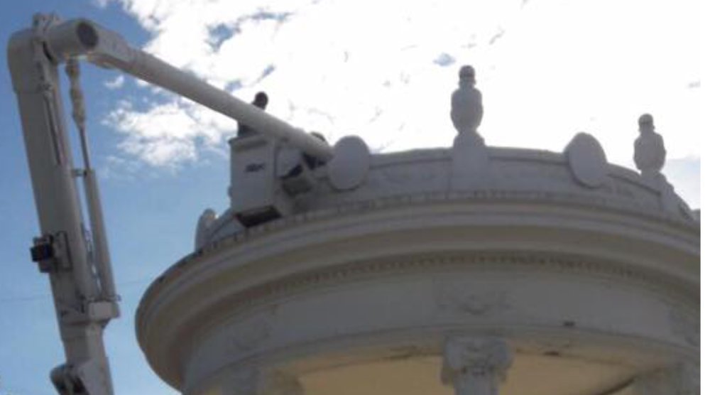 «Ya sacamos el agua de la corona del templete, los bajantes de desagües estaban tapados y miren, desde abajo le introducen basuras, no hay derecho», remarcó.