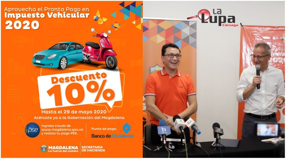El gobernador Carlos Caicedo, lanzó por primera vez en la historia del Magdalena un descuento del 10% para el impuesto vehicular y moderniza las arcas departamentales, al crear una red de recaudo desde los municipios para el pago de dicho trámite fiscal.