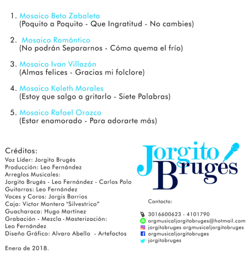 Es importante indicar que la producción de este CD fue realizada por el también músico cienaguero Leo Fernández, quien acompaña con su magistral guitarra, cada una de las canciones interpretadas por Jorgito Brugés.