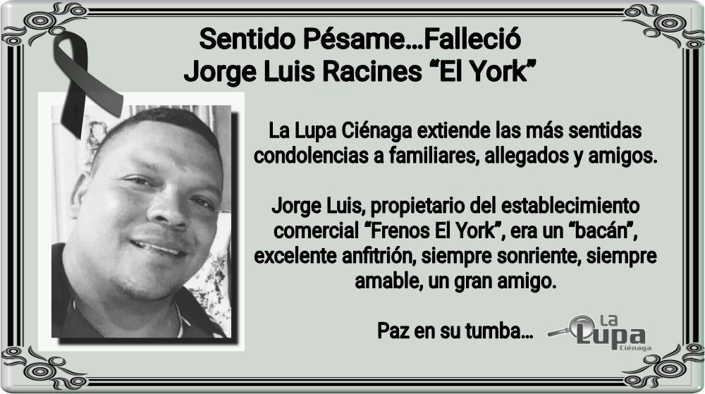 Read moreLa Lupa Ciénaga extiende las más sentidas condolencias a familiares, allegados y amigos. Jorge Luis, propietario del establecimiento comercial “Frenos...