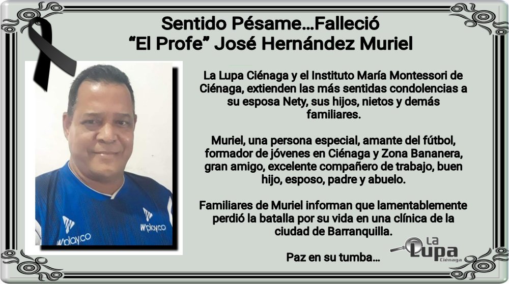 Read moreLa Lupa Ciénaga extiende las más sentidas condolencias a su esposa Yasmín Rocío Pérez González, hijos, familiares, allegados y amigos....