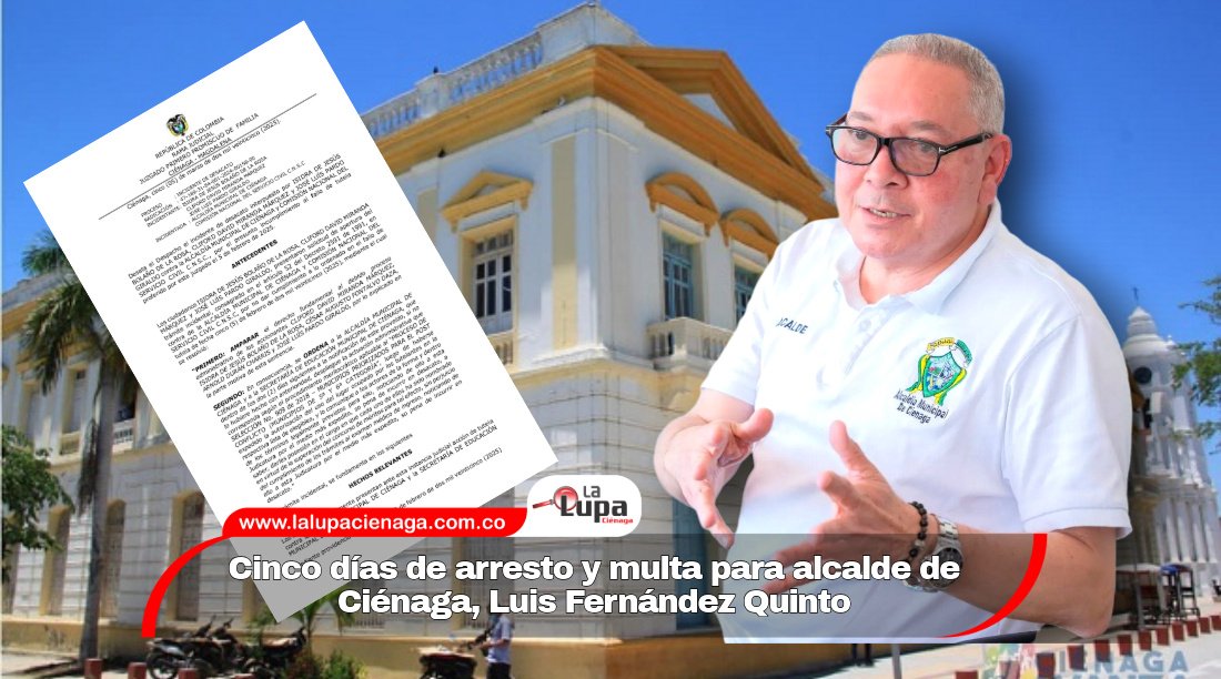 El Juzgado Primero Promiscuo de Familia de Ciénaga ordenó el arresto por cinco días y la imposición de una multa de cinco salarios mínimos al alcalde Luis Fernández Quinto, por incumplir un fallo de tutela que ordenaba el nombramiento de varios ciudadanos en cargos públicos tras haber superado un concurso de méritos.