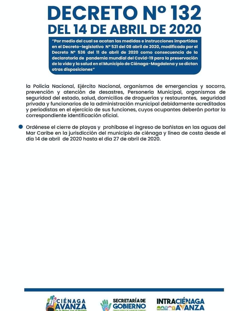 Estos actos administrativos nacen como consecuencia de la declaratoria de pandemia mundial del Covld-19 para la preservación de la vida y la salud en el municipio de Ciénaga – Magdalena y se dictan otras disposiciones.
