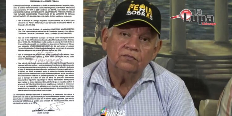 El Municipio de Ciénaga, en cabeza de su Alcalde se permite informar a la opinión pública, entes de control, Gobierno Nacional y comunidad en general, que respecto del Convenio Interadministrativo N° 1017 de 2021 celebrado con INVIAS, cuyo objeto es «AUNAR ESFUERZOS PARA EL MANTENIMIENTO, MEJORAMIENTO Y REHABILITACIÓN DE VÍAS RURALES CORREDORES PRODUCTIVOS EN EL MUNICIPIO DE CIENAGA DEPARTAMENTO DEL MAGDALENA – COLOMBIA RURAL», se informa lo siguiente: