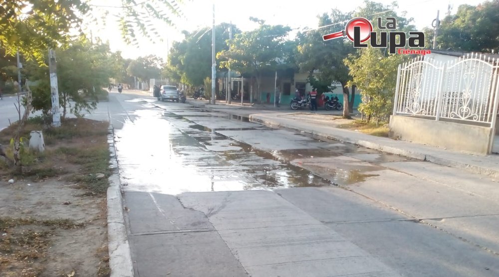 La fuga al parecer se registra en inmediaciones de la antigua cárcel municipal de Ciénaga y según varios moradores del entorno, esta agua sale de una tubería que fue instalada por la empresa Aguas del Magdalena.
