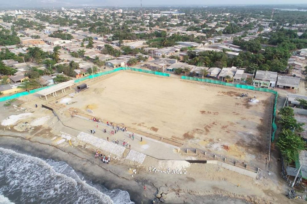 El alcalde Edgardo Pérez Díaz, recorrió la obra donde se construye la cancha del barrio Brisas del Mar, proyecto que se ejecuta con recursos del Sistema General de Regalías y constató el avance reportado por el contratista.