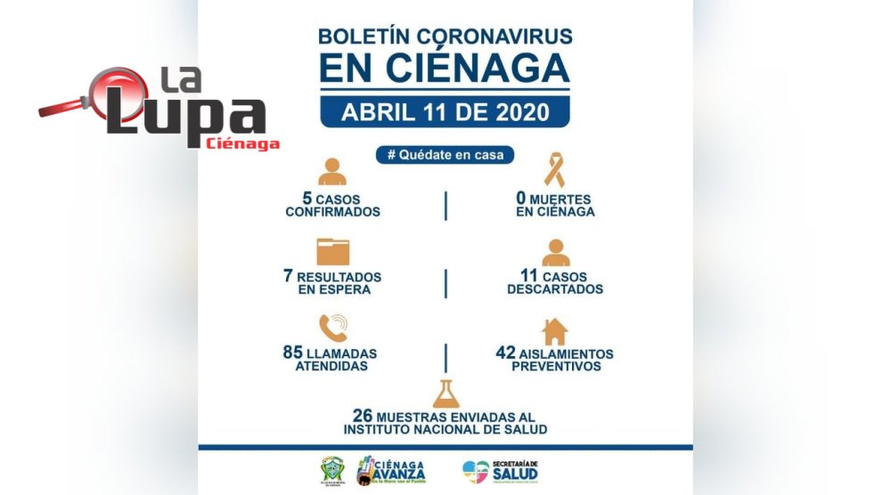 Se reportan dos nuevos casos de pacientes positivos en Ciénaga, uno se encuentra en hospitalización fuera del municipio y el otro caso cumple aislamiento en casa, también fuera del municipio.