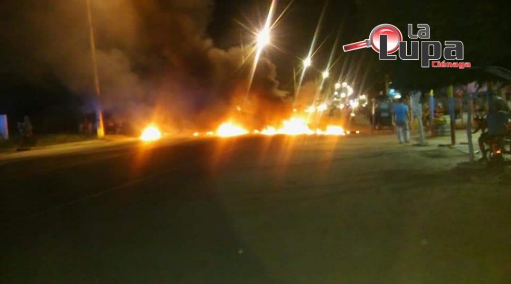 El bloqueo con llantas quemadas se generó en inmediaciones de la nueva Olímpica en Ciénaga (Troncal del Caribe), ante la falta de energía eléctrica.