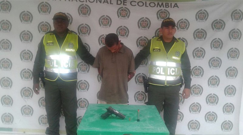 Se le encontró al sujeto un arma de fuego tipo pistola marca Jericó calibre 9mm, sin documentos . El arma y el sujeto fueron dejados a disposición de la Fiscalía.