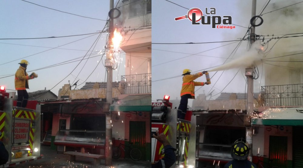 La falla eléctrica afectó la caja de reparto y la carpa. El llamado fue atendido por el cuerpo de Bomberos Voluntarios de Ciénaga.