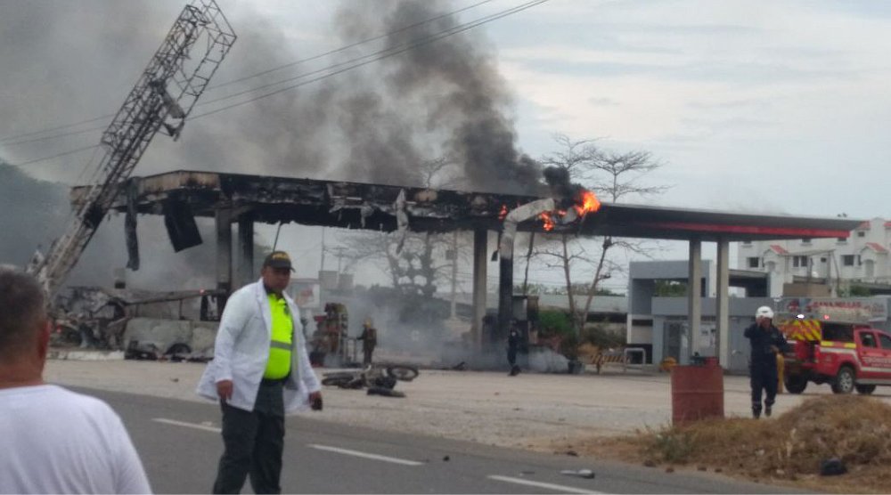 Presuntamente la buseta chocó contra el surtidor de combustible generándose la explosión y una gran conflagración.