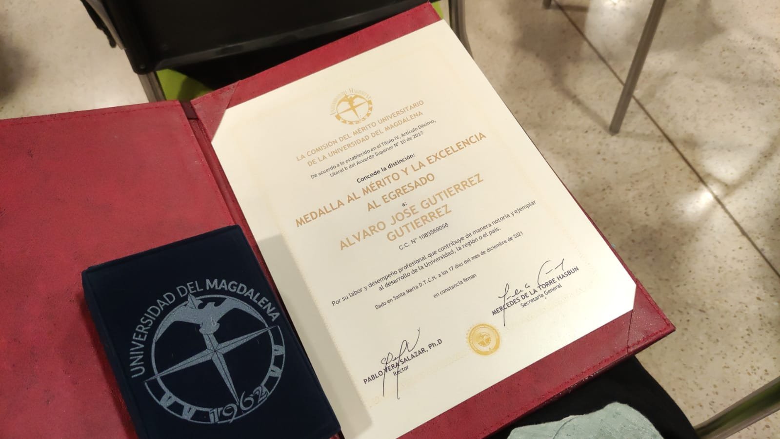 Hoy 17 de diciembre recibe la distinción Medalla al Mérito y la Excelencia al Egresado de la Universidad del Magdalena.