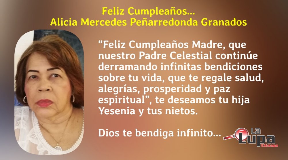 “Feliz Cumpleaños Madre, que nuestro Padre Celestial continúe derramando infinitas bendiciones sobre tu vida, que te regale salud, alegrías, prosperidad y paz espiritual”, te deseamos tu hija Yesenia y tus nietos.