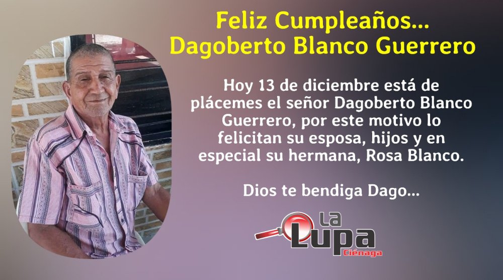 Hoy 13 de diciembre está de plácemes el señor Dagoberto Blanco Guerrero, por este motivo lo felicitan su esposa, hijos y en especial su hermana, Rosa Blanco.