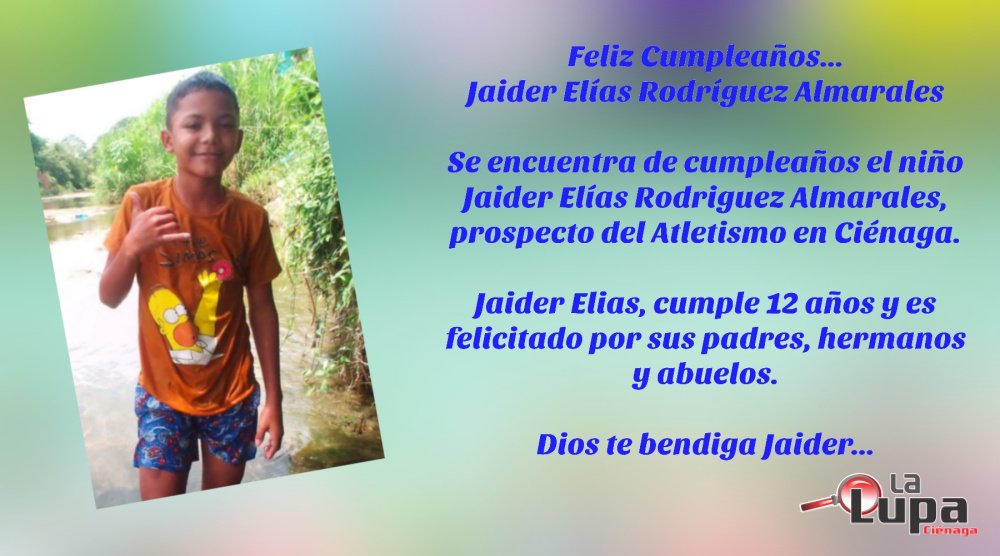 Se encuentra de cumpleaños el niño Jaider Elías Rodriguez Almarales, prospecto del Atletismo en Ciénaga.