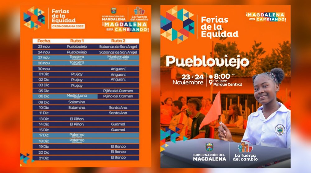 Con el firme propósito de mantener su lucha por mejorar la calidad de vida de los magdalenenses, el gobernador Carlos Caicedo reiniciará este miércoles 24 de noviembre, las Ferias de la Equidad, proyecto con el que se han beneficiado más de 63.000 personas durante el 2021.