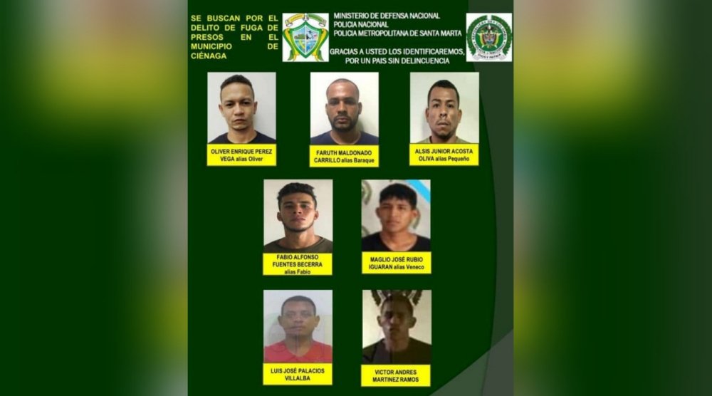 Las autoridades policivas identificaron a los fugados como: Oliver Enrique Pérez Vega, Faruth Maldonado Carrillo, Alsis Júnior Acosta Oliva, Fabio Alfonso Fuentes Becerra, Maglio José Rubio Iguarán, Luis José Palacios Villalba y Víctor Andrés Martínez Ramos.