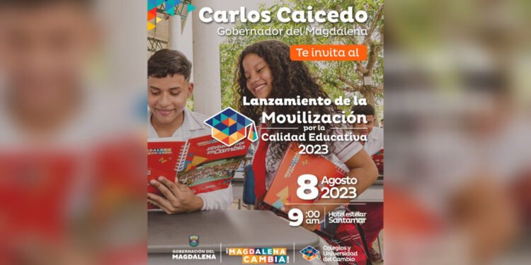Apostándole a la educación pública como una de las herramientas de cambio y transformación social, el gobernador del Magdalena, Carlos Caicedo Omar, liderará la nueva etapa de la Movilización por la Calidad Educativa en las instituciones educativas del Departamento. El lanzamiento del programa se realizará este martes 8 de agosto, a las 9:00 a.m., en el Estelar Santamar Hotel y Centro de Convenciones de la ciudad de Santa Marta.