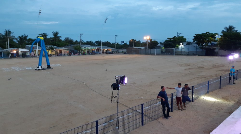 La cancha de ‘Brisas del Mar’, está hecha en arena compacta con las indicaciones de medida que señala la FIFA, tiene además un mirador frente al mar, compuesto a la vez de gradas, un salón comunal para las actividades sociales, máquinas biosaludables, lámparas de última tecnología y un sistema de iluminación con energía fotovoltaica que mantendrá siempre con luz este espacio, y que además es amigable con el medio ambiente.