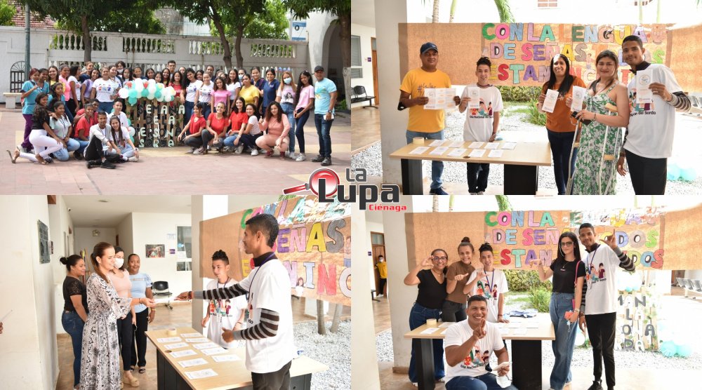 La primera actividad fue la elaboración de carteleras por parte de los estudiantes con discapacidad auditiva. Estas creaciones fueron instaladas en la entrada de la Sede Académica para dar a conocer la importancia que tiene la población sorda en la sociedad.