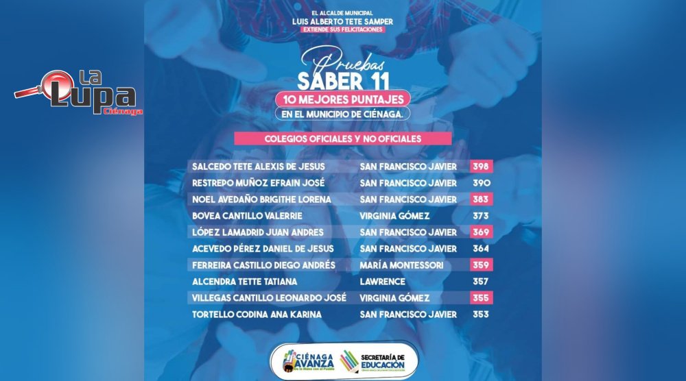 Estos estudiantes con su alto desempeño engrandecen el nombre de nuestro municipio, por eso todo el gobierno ‘Ciénaga Avanza de la Mano con el Pueblo’, resalta sus puntuaciones.