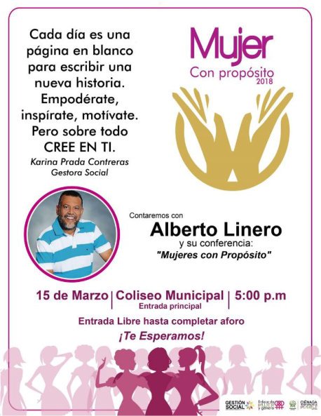 De igual manera, la funcionaria extendió la invitación a todas las mujeres para que asistan este jueves 15 de marzo, recordando que la entrada al coliseo es totalmente gratis y que contará con la presencia del Padre Linero, el cual compartirá sus experiencias con todas las personas que tengan la oportunidad de asistir.