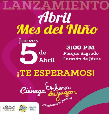 En el Parque Sagrado Corazón de Jesús «La Placita”, este jueves 5 de abril se realiza el lanzamiento del Mes del Niño, a partir de las 3 de la tarde.