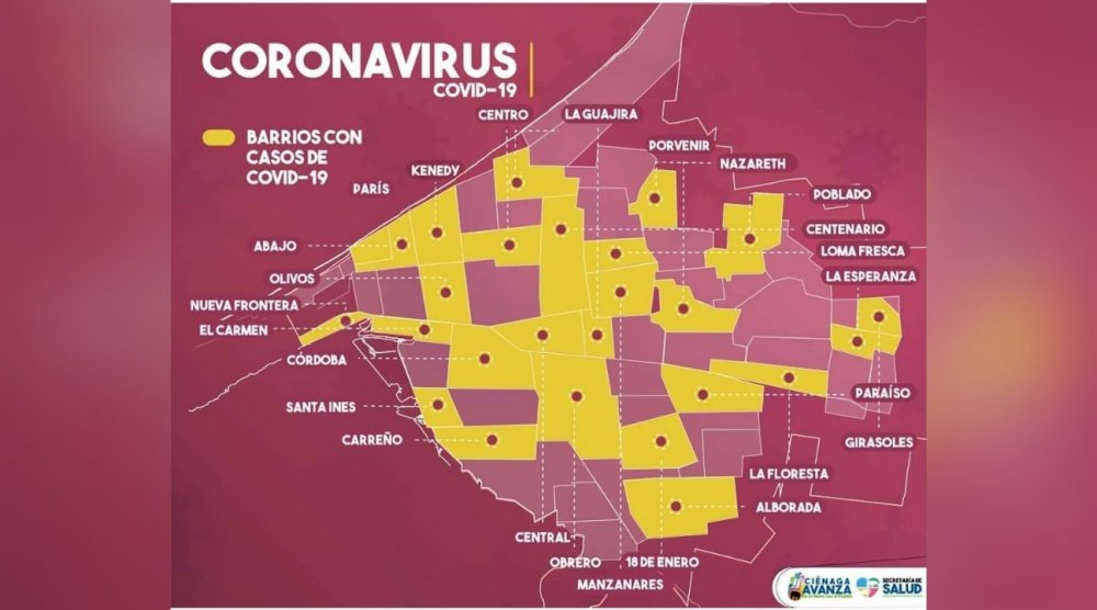 Ante el incremento de casos de pacientes con Covid 19, la alcaldía de Ciénaga publicó el mapa actualizado con datos de los casos activos por barrios.