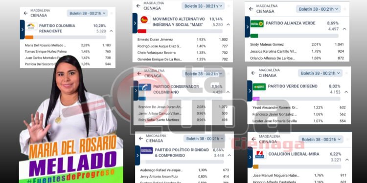 Para el concejo de Ciénaga el preconteo electoral llegó a 251 mesas informadas de 279, correspondiente al 89,96%.