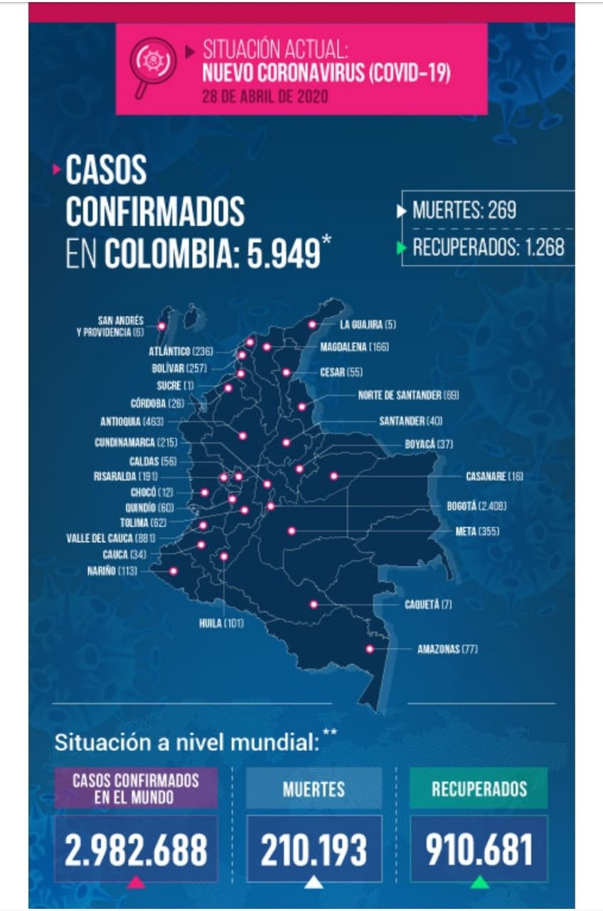 En Colombia hay 5.949 contagiados y 269 muertos. Hoy se procesaron 4.186 pruebas