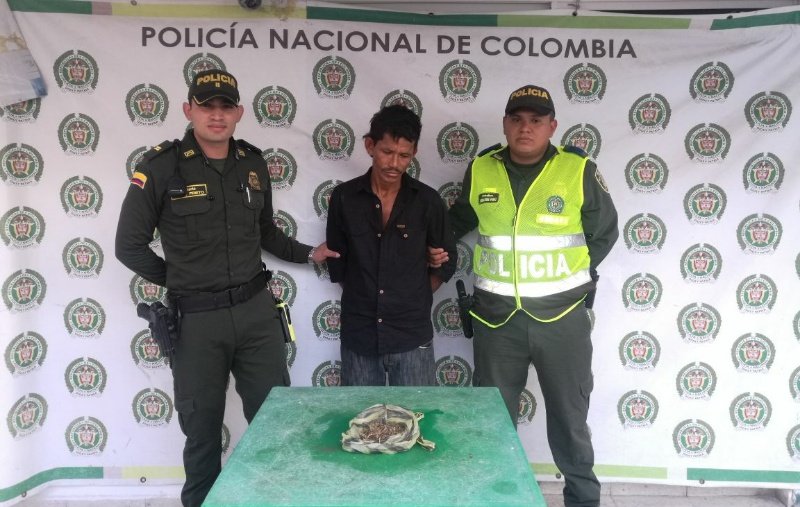 El capturado tiene 40 años de edad y según el reporte policivo se le halló en su poder una bolsa con aproximadamente 60 gramos de marihuana, siendo capturado por el delito de porte y trafico de estupefacientes.