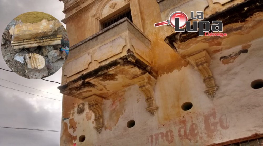 Varios pedazos han caído de la vieja edificación y quienes nos enviaron las fotografías, consideran que se deben tomar correctivos por parte del propietario para evitar un hecho que lamentar.