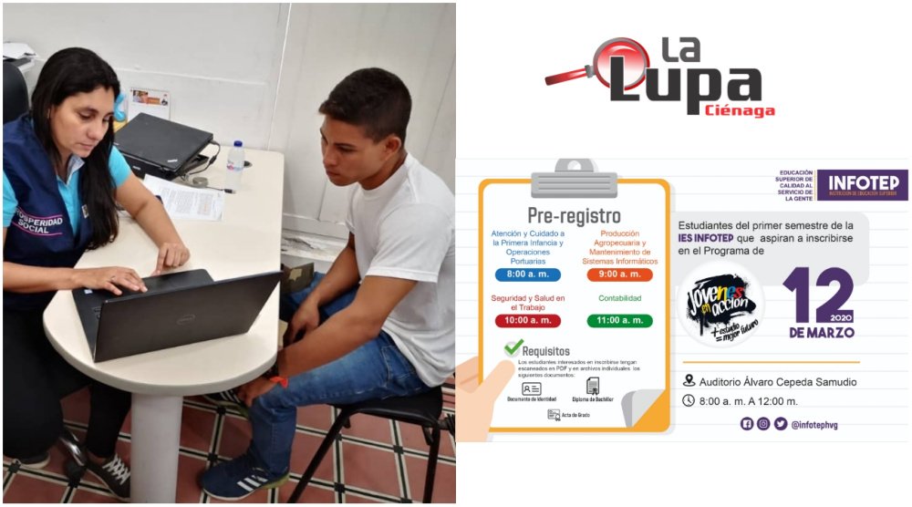 El pre-registro para los estudiantes del primer semestre de la IES INFOTEP que aspiran a inscribirse en el Programa de Jóvenes en Acción se desarrollará en el auditorio de la institución, de 8 a 12 del mediodía.