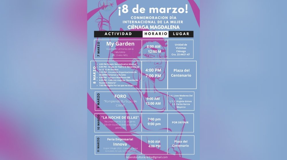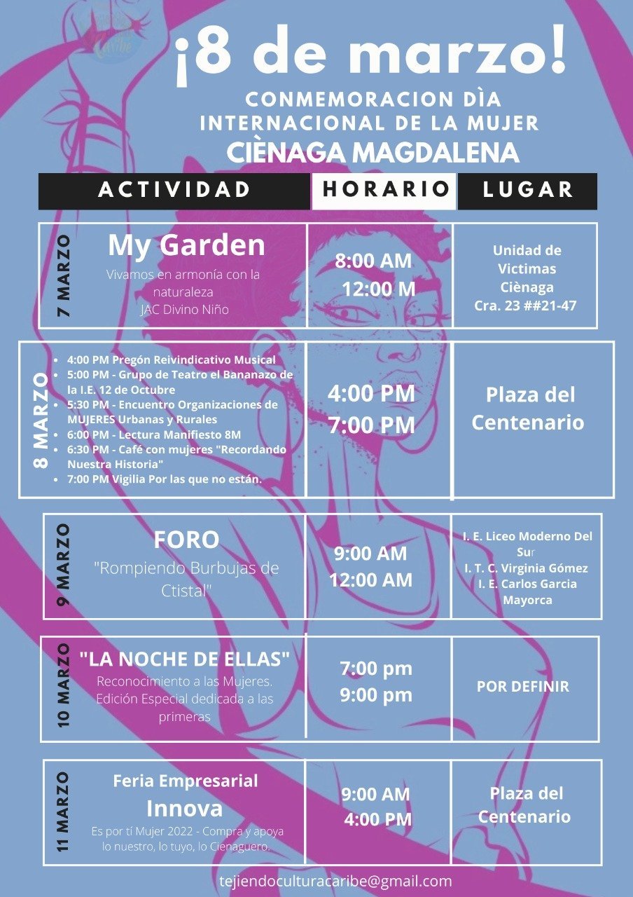 La invitación está abierta para toda la comunidad cienaguera, para que se vincule en esta importante conmemoración del Día Internacional de la Mujer.