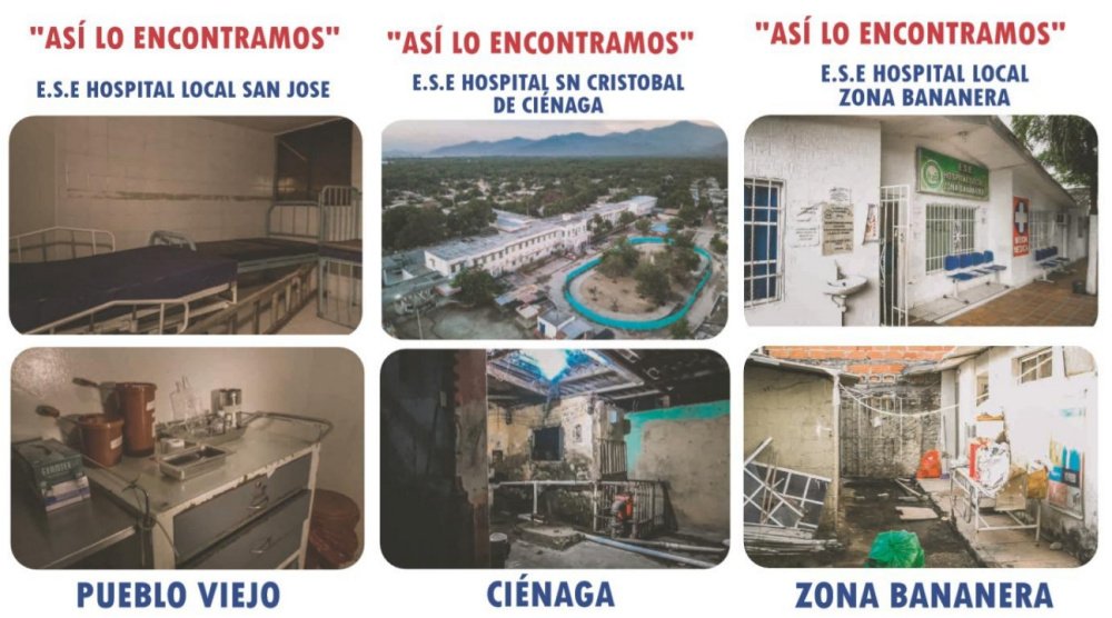 La Gobernación del Magdalena informa a la comunidad sobre el estado de la red pública hospitalaria del departamento, la cual se recibió con una planta física en ruinas y en condiciones antihigiénicas; una dotación obsoleta e insuficiente; una red de ambulancias deteriorada; procesos administrativos desordenados; con una cartera irrecuperable, sin recursos, endeudada y en total quiebra; con un recurso humano en condiciones inestables e indignas y con una oferta insuficiente e inadecuada atención a las necesidades de la gente.