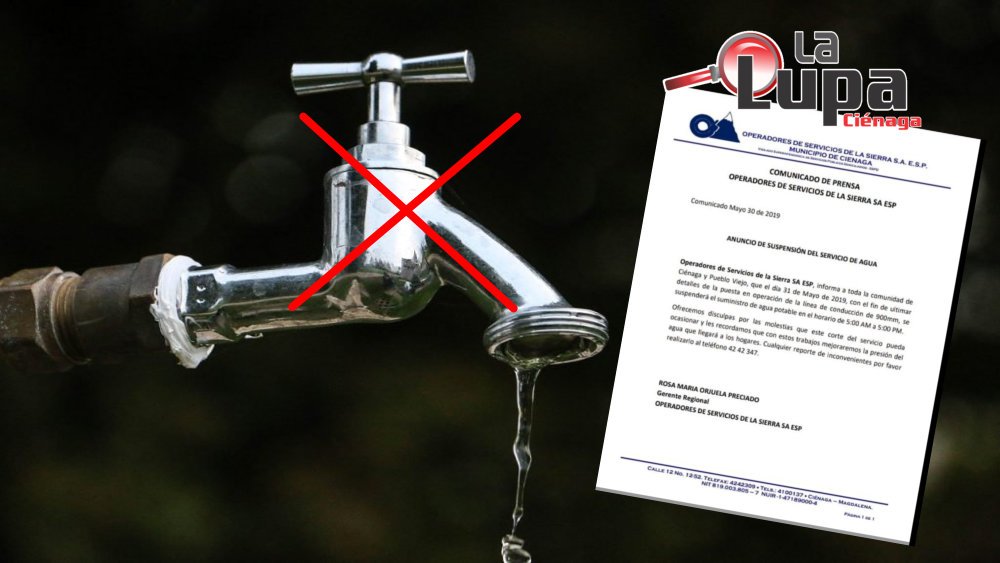 Operadores de la Sierra en comunicado de prensa informa que la suspensión del servicio se realiza para ultimar los detalles de la puesta en funcionamiento de la tubería de 900 mm este 1 de junio de 2019.