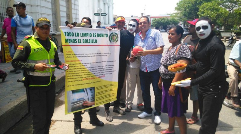 En la actividad pedagógica contra el fleteo, participó el alcalde Edgardo Pérez Díaz en compañía de agentes de la policía y varios mimos, con los cuales se le explicó a la ciudadanía sobre los peligros que se le pueden presentar cuando realiza alguna transacción en una entidad bancaria.