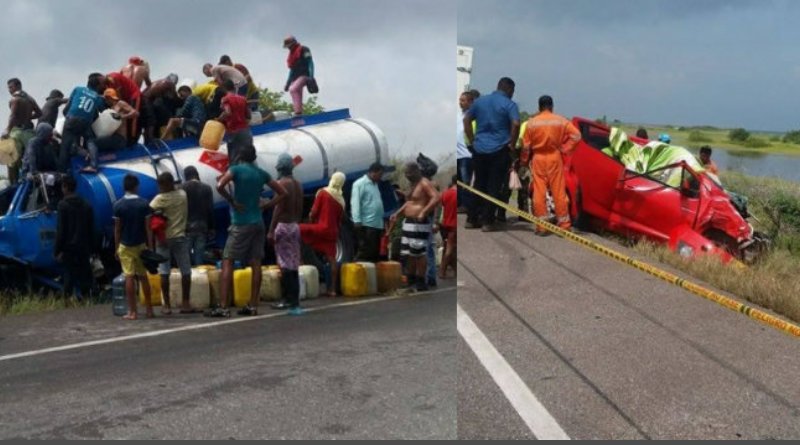 En horas de la mañana de este martes 11 de octubre se produjo el accidente en la Troncal del Caribe, donde se vieron involucrados el Chevrolet Spark Gt y el camión cisterna marca Dodge, los cuales se salieron de la vía.