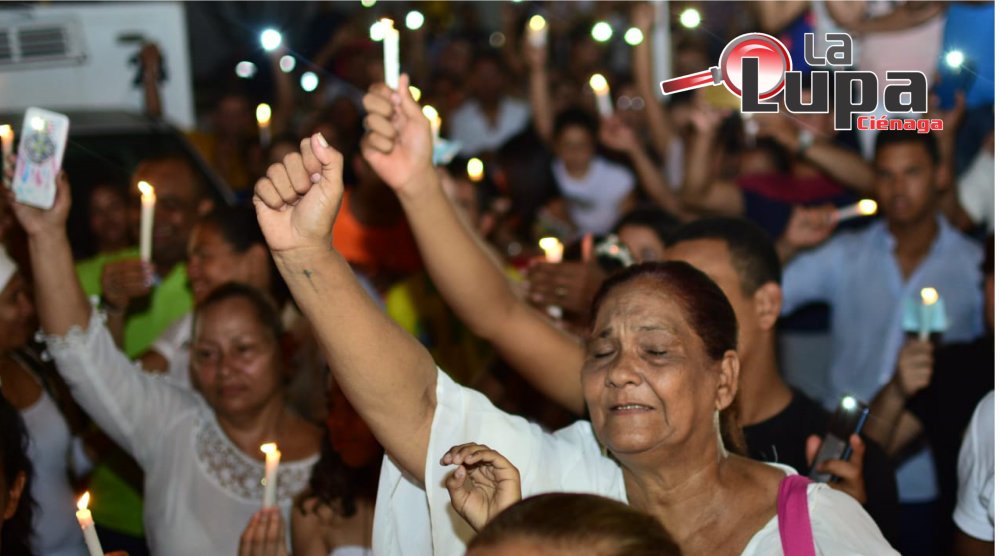 ‘Una luz por Ciénaga, de corazón y con razón’, fue el nombre del acto simbólico, realizado en horas de la noche de este domingo 2 de septiembre, en el que los asistentes elevaron oraciones, cánticos y mensajes de buenos deseos.