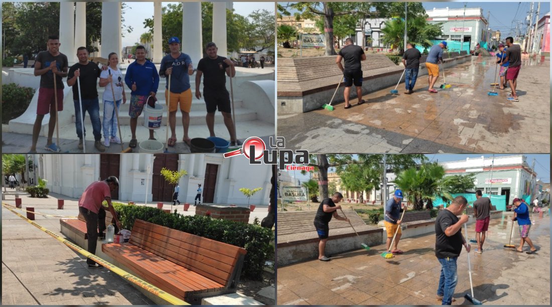 Los vendedores de la plaza del Centenario, entre quienes se cuentan los de raspao, fritos y otras clases de negocios, con escoba y trapero, realizaron una jornada de limpieza en lo que consideran ellos, es su sitio de trabajo.