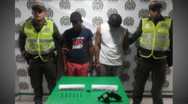 El reporte policial revela que las dos personas fueron capturadas en la calle 35 con carrera 13 esquina del barrio Nelson Pérez, ubicado al sur de la ciudad, en posesión de un revolver y seis (6) cartuchos para el mismo.